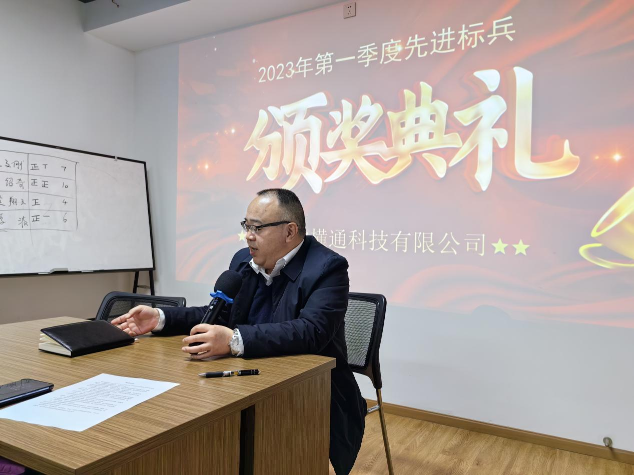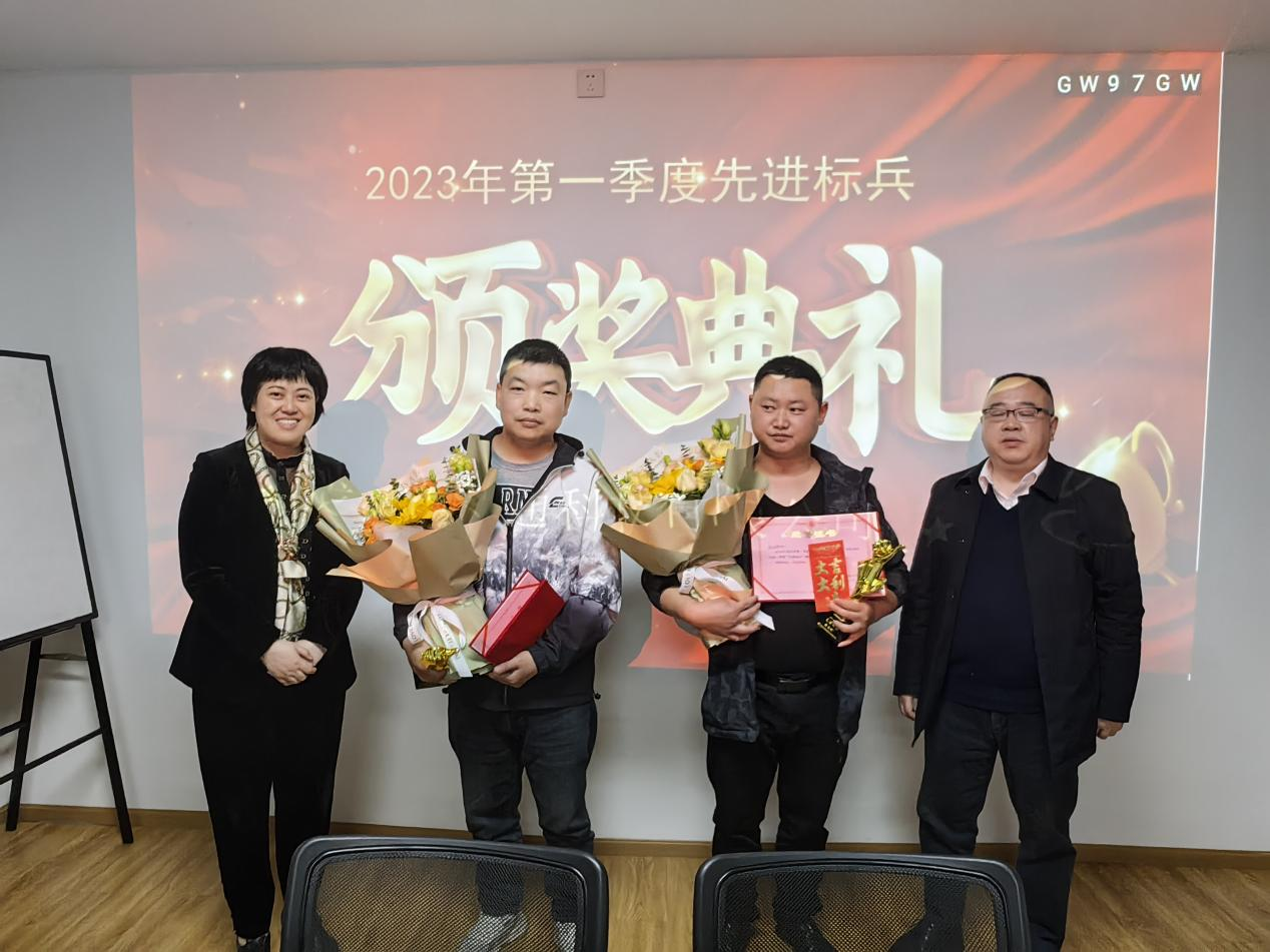 經(jīng)過激烈的現(xiàn)場投票后,陳文剛、唐紹奇榮獲中橫通2023年第一季度的先進(jìn)標(biāo)兵榮譽(yù)稱號,公司執(zhí)行董事杜久彬先生、總經(jīng)理劉永梅女士為他們頒獎并送上公司對他們的獎勵。臺上耀眼的燈光,臺下不間斷的掌聲,都是給他們最強(qiáng)烈的喝彩,以及最崇高的致敬!